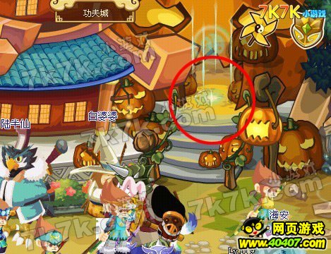 南瓜密室就在功夫城万国商会馆的右边(陆半仙的右上边),如图红圈所示