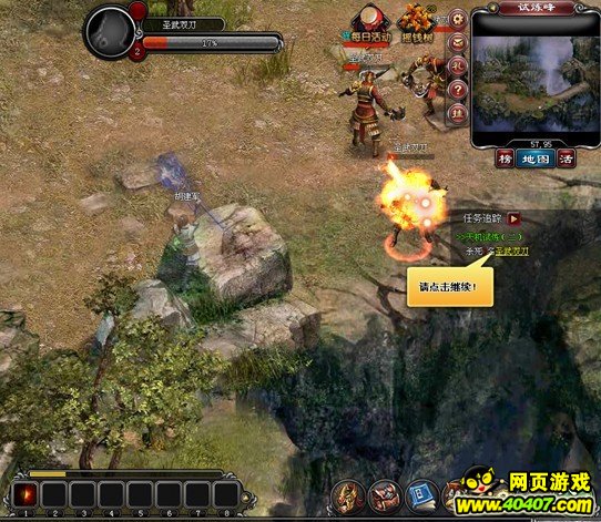 玩家可以点中怪物,然后点击游戏下方的快捷栏中的技能,就可以进行技能攻击。如果攻击的距离不够,玩家会自动跑到适合攻击的距离进行攻击。