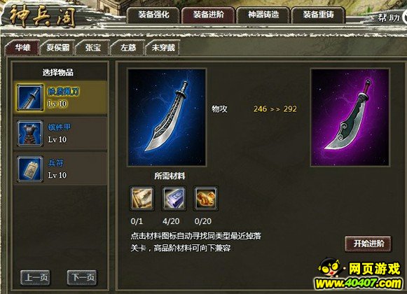 在封地的神兵阁中(或点击下方强化)可以强化兵器和打造神器。