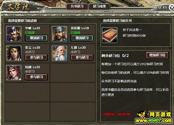 在游戏右上方可以挑战列传。列传中的将领比普通战役要厉害的多,需要玩家有一定实力才能挑战。列传中的每个关卡每天有一次免费挑战成功的机会,失败可以再来。挑战成功可以获得兵法卷轴,在太学院学习兵法可以永久提高武将能力。