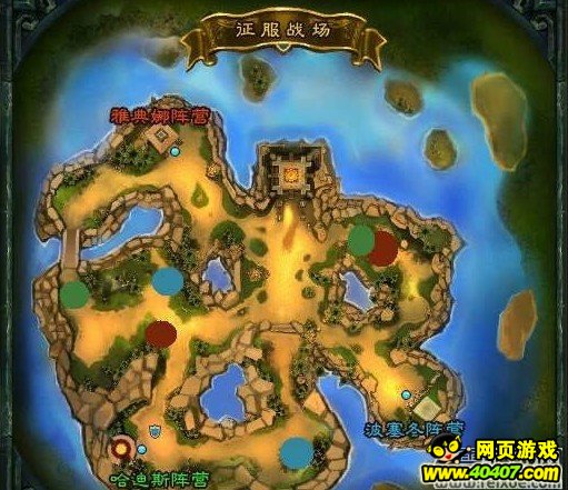 如下图所示,图片上面有用几种颜色圆圈标记。红色标记是雅典娜阵营做巡逻兵任务比较效率的区域,绿色标记为哈迪斯阵营做巡逻兵任务比较效率的区域,蓝色标记为波塞冬针翼做巡逻兵任务比较效率的区域。