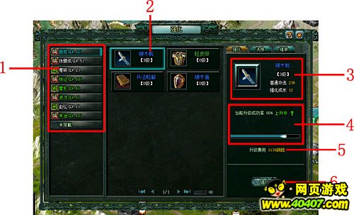 游戏初期,战胜“恶虎寨”后,会获得强化功能,点击强化功能按键可打开强化界面。