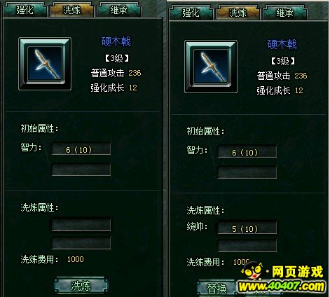 洗炼是可以将带属性的装备(蓝色及紫色品质)的属性改变,每次花费1000铜币。