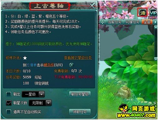 任务奖励:经验和绑定铜钱,完成4星以上任务可额外获得蓝色洗练石。