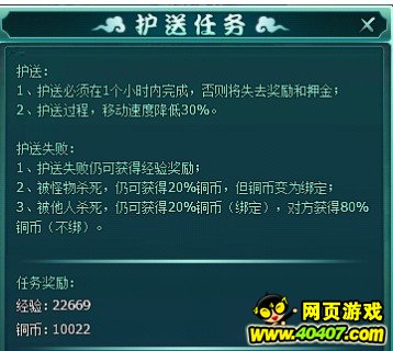 玩家每天可以护送3次,每次需要交付200非绑定铜币作为押金。