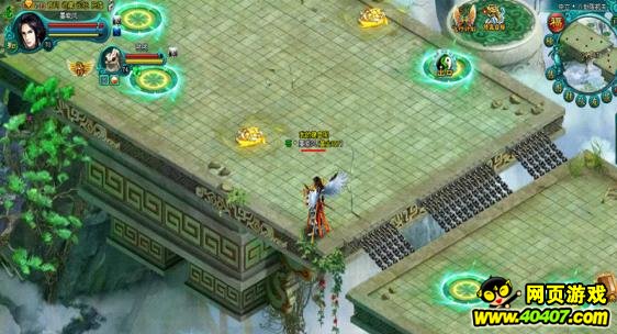 8、奇门八卦—伤门:这个门是我认为八卦阵中最不好打的,老攻略说用宝宝挡一下,我不会。具体的打法,前面那四个飞镖好过,不说了,第二组的五个跑动时机如下图 :