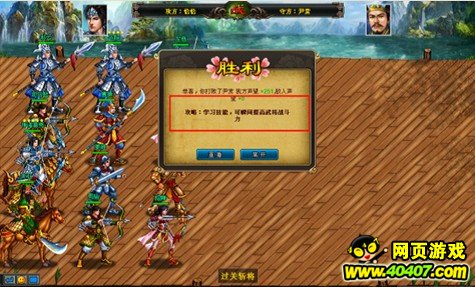 由于此系统是为新手玩家准备,所有在过关斩将中,NPC的实力都不是很强,如果您在推图的过程中,遇到了困难,您可以按照系统提示的攻略,强化自己的武将.
