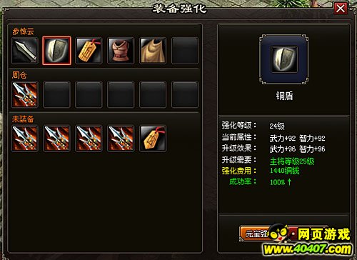 元宝强化:耗费元宝使本次强化100%成功,并且自动扣除强化冷却时间。
