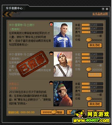 在游戏中,您作为一名俱乐部经理需要去招募一些车手来为自己的车队效力。这时“车手招募中心”将成为您的最佳选择。这其中不仅有天资不错的新人车手、世界知名F1车手、甚至还有知名影视作品中的明星车手哦!他们都有着各自不同的属性和技能,而且随着您精心的培养他们也将日益强大,最终为您的车队和俱乐部带来丰厚的回报及荣誉。