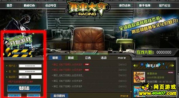 1.首先您需要在《赛车大亨》的官方网站中注册一个账号,注册成功后即可进入游戏!