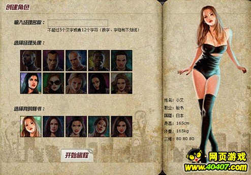 3.另外,在创建界面的下方还有五位性感靓丽的“小秘书”等着您的选择噢,她们可是会在游戏中给您带来很多帮助与便利,当您在全部选择完毕后,点击“开始旅程”按钮即可!