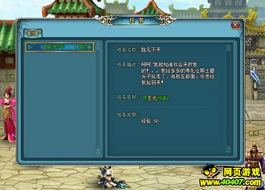 创建完职业就正式的进入游戏了。首先来说说,这款游戏的画面风格还是不错的,有些写实轻松的风格,让人很容易接受。而且各个系统按钮的排放也很清楚,一眼就能让玩家知道是怎么回事。而且,刚进游戏就看见貂蝉了嘿!传说中的美女啊!哇哈哈哈!