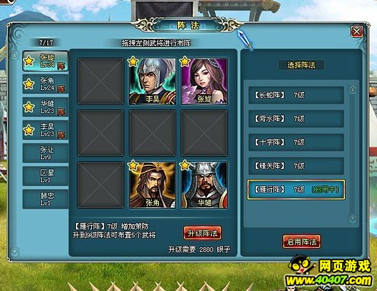 作为策略类的战斗游戏,当然战斗是不可缺少的。在任务过程中,各位将会遇到很多三国时期著名的人物。你要毫不留情的将他们一一斩于马下!至于战斗的方式,就是经典的排兵布阵的对抗了。前期战斗比较简单,都是单人的,就不细说了,在做了一些任务之后,大家就能够得到自己的第一个武将。这时便开始出现排兵布阵的概念了。十字阵、长蛇阵、雁行阵等等这些三国经典阵法你都会慢慢的接触到。需要注意的是,布阵是有讲究的。大家需要看清敌方是什么阵型,职业都是什么,然后再去布置自己的阵法,排列自己的武将。如果你遇到战斗失败,首先看一下你的血量,如果没有血了,那就去背包磕上一个血包吧(商店中也可以购买)。然后在研究一下阵法武将的排列。或者去点开界面上的强化按钮,强化一下装备,升级一下角色属性。如果你受不了CD时间的话,那就去冲个VIP吧