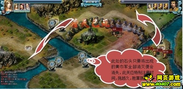 2. 张角看似很好对付,兵力少攻击低,但因为下方的道路被封堵,我方几乎要绕战场一周才能和张角交火。