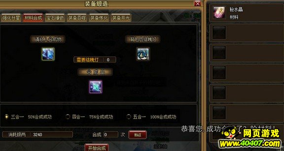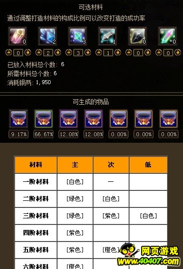 根据装备等级,每种装备所需要的材料数量不同;投入的材料阶数越高,获得高品质装备的几率越高;不同阶数的材料可以混合使用。