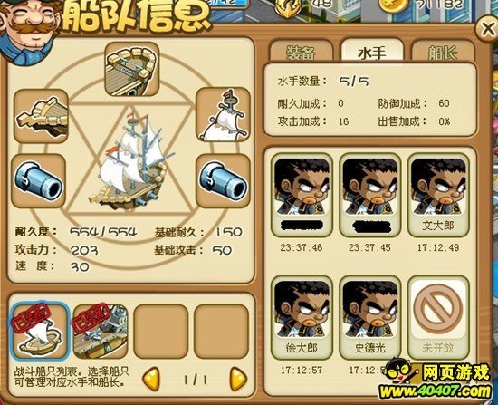 招募水手可以获得耐久、防御、攻击和出售的加成效果。