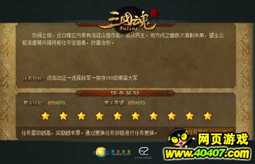 君主任务每天都只有10次,为了让这10次机会效益最大化,你可以花费少量元宝来更换任务星级,以便获得更多的任务奖励。