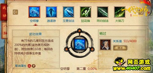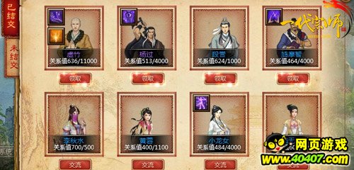 在《一代宗师》里,玩家可以通过结识名人学到多达几百种的武功秘籍。通过与名人保持较高的关系值,可向其学习武功、修炼筋脉。
