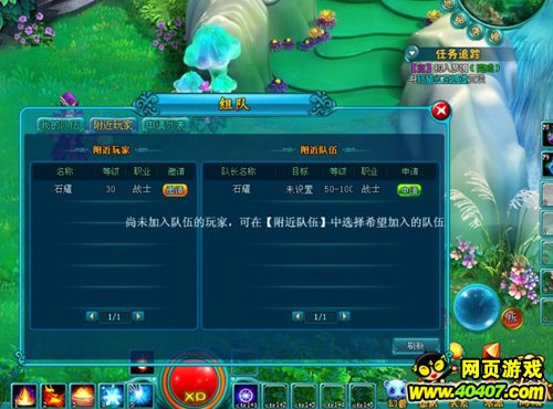 尚未加入队伍的玩家,可在【组队】-【附近队伍】中找到可以加入的队伍(好友也可以点菜单申请入队/邀请组队):