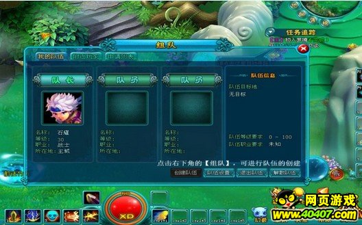建立队伍首先需要发起者创建队伍,点击右下方的【组队】,可进入组队界面,队伍创建成功后,发起者将自动成为队长: