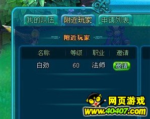身为队长的玩家可查看【附近玩家】,并发出组队邀请: