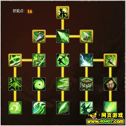 游戏中,主角拥有技能树。主角每5级能够获得一个技能点数,用以点亮技能树上的技能。主角可以通过技能树学会多个主动技能。如下图所示,有宽金边的技能就是主动技能: