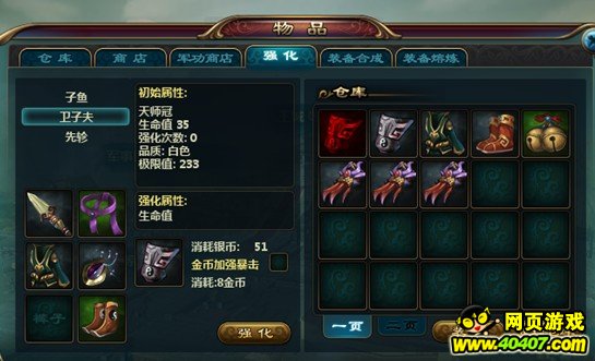 2、强化装备。装备的基础属性都是比较低的,所以想要获得高额的附加属性值,还得强化装备,这样才能快速提升武将的能力。比如同样是同等级同品质的装备,进行过强化和没强化的装备差距是非常大的。