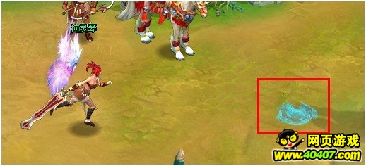 在游戏画面中,玩家角色位于屏幕中央位置附近。只需将鼠标移动到目标地点,点击鼠标左键即可移动。红框中的蓝色标点就是指定人物要到达的点了。