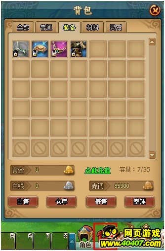 背包不够用,怎么办?很简单,去找仓库保管就行,将暂时不能使用或者不方便携带在人物物品栏中的装备和其他道具寄存在仓库。