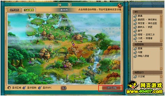 点击右上角的【图】或使用快捷键M打开地图界面,点击【投石问路】按钮,全部NPC那里就会显示当前地图所有的NPC,点击传送,传送到对应NPC的位置。
