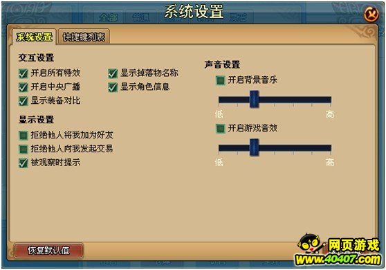 为了可以更好地体验游戏,您可以根据自己的需要对游戏系统进行相关设置,设置好后点击保存即可。系统设置按钮在游戏界面右上方。