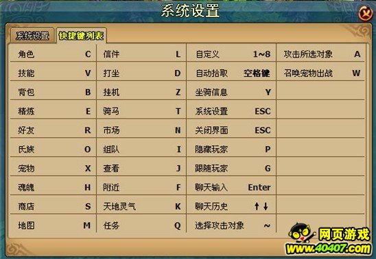 造梦西游4快捷键功能说明 键位基础篇