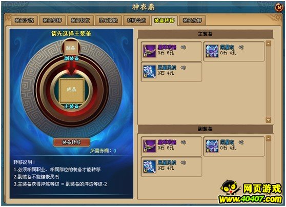 注:必须同职业、同部位装备才能转移。