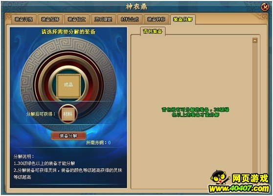 将30级以上绿色装备分解可获得铭文符,分解的装备颜色等级越高获得的铭文符等级越高。