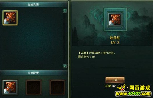 可对侠客技能进行升级,技能等级不能超过侠客等级,升级技能等级可发挥更强的技能效果。升级技能消耗的银两、时间与该技能等级成正比关系。