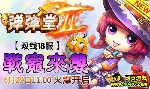 快玩《弹弹堂II》新版本强势来袭,全新副本开启勇士新战场,60级新巅峰挑战战力新高度!战宠助阵,强化系统升级,弹友们在弹弹王国的冒险之旅将踏上新的征程!mm超多的Q版竞技类网页游戏,尽在快玩《弹弹堂II》!让我们一起期待并加入2012年06月29日11:00新服18服“战宠来袭”。