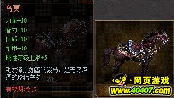 毛发漆黑如墨的骏马,是无尽沼泽的珍稀产物可以通过神奇礼盒活动获得。