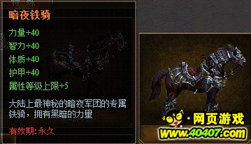 获得方式:在迷宫商店购买“暗夜铁骑碎片”,集齐规定数量后,在铁匠铺“合成”处合成。