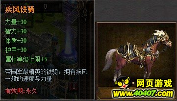获得方式:在10级公会商店购买“疾风铁骑碎片”,集齐规定数量后,在铁匠铺“合成”处合成。