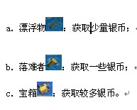 o 捡东西:玩家可以在闲暇时去其他玩家领域,河流上经常会有三种漂浮物,捡到之后会获取少量银币。