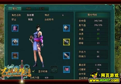 《大明英雄传》中的刺客们,向来以行踪诡秘著称,如果有幸见到,那么,你离死亡也已经不远了。是不是觉得刺客是个不错的职业呢?赶快到《大明英雄传》中来体验最快最强的体验吧!