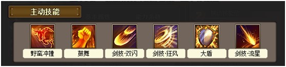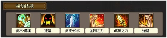 战神之力:发动时提升下一次攻击的攻击力,技能触发率与加攻效果随着技能等级提升。