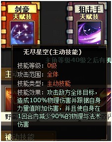 无尽星空:攻击敌方全体目标,造成100%物理伤害并根据自身力量值附加伤害,并且使自身在1回合内减少90%的物理与法术伤害。
