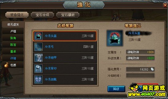 选择右下角‘强化’功能进入强化面板,花费银币进行强化