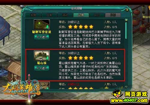 在达到30级之后,玩家打开右上角的【活】字按钮,点击幻境,就能够在界面中看到蜀山顶选项,点击进入,就可以蜀山顶去挑战妖皇了。小编在这里要提醒下大家,大雪弥漫的蜀山顶是个人迹罕至的地方,而妖皇又是妖中至尊,挑战之前记得要带好药品哦!