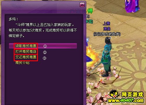⑤回到帝都多玛处,先把东西卖给他,再选择“交还商贸商票”,一次完整的跑商就完成了。