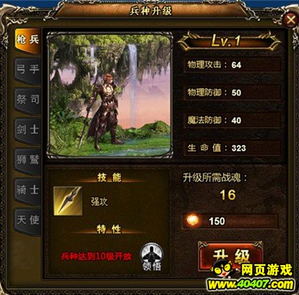 狮鹫:熬到30了?快点升级兵营召唤狮鹫吧,但是别心急,狮鹫点到30级即可,150万战魂。狮鹫是法师居家旅行、pk下本必备利器啊!150%的攻击伤害技能,特别是10%的昏迷几率,当触发的时候,你会觉得世界如此美好。你问剑士、祭祀怎么办?过渡懂么,那只是过渡啊亲……
