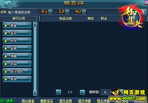 如果玩家不喜欢单纯刷副本的话,可以尝试一下“拍卖行”,享受当商人的乐趣。《御龙决》的拍卖行可以卖的东西几乎包括游戏中的全部物品,而且设置十分人性化,从职业、品质、等级到热门搜索都有,玩家们可以根据自己的喜好和兴趣来出售各种游戏道具或者“低买高卖”赚钱。当然了,做商人赚的钱肯定没有刷副本来得快,但是有时候也可以淘到各种稀有装备和道具,就看玩家买卖的功夫如何了!