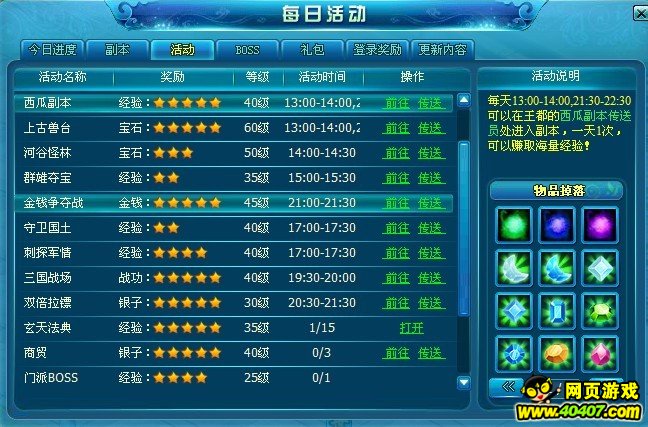 群雄夺宝,进入这个活动,在一定的时间段都是可以获得大量的经验,打开宝箱之后还可以有机会获得经验丹和各种宝石。
