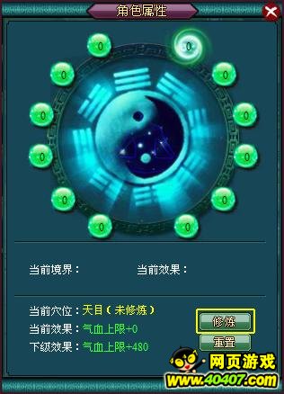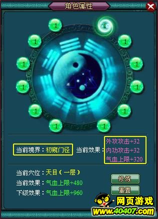 2.修炼:点击“修炼”按钮,即可对当前穴位进行修炼。